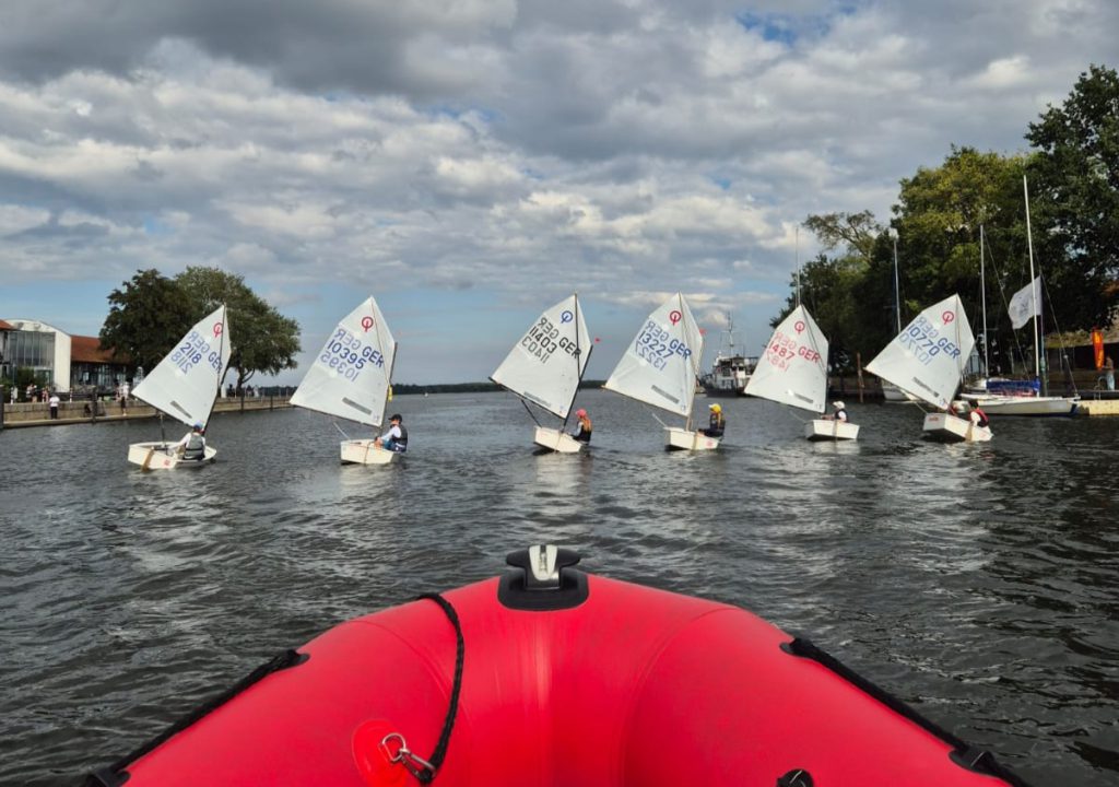 Am Samstag, den 30.08. trafen wir uns ab 12 Uhr auf dem Gelände des Maritimen Jugenddorf Wieck (Majuwi), um unser Sommertrainingslager in Greifswald zu beginnen. 10 aktive Opti-SeglerInnen in den Gruppen A/B und C bauten nach dem Abladen schnell ihre Boote auf und starteten mit ihren 4 TrainerInnen noch am Nachmittag zur ersten Einheit aufs Wasser. Das Trainingslager wurde in Kooperation von Segelgemeinschaft Wendenschloß e.V. und Yachtclub Wendenschloß e.V. ausgerichtet, aus denen auch alle SportlerInnen kamen. Ursprünglich sollten auch die 420er-SeglerInnen aus weiteren Vereinen dabei sein, die sich jedoch kurzfristig für ein anderes Trainingslager am Scharmützelsee entschieden.